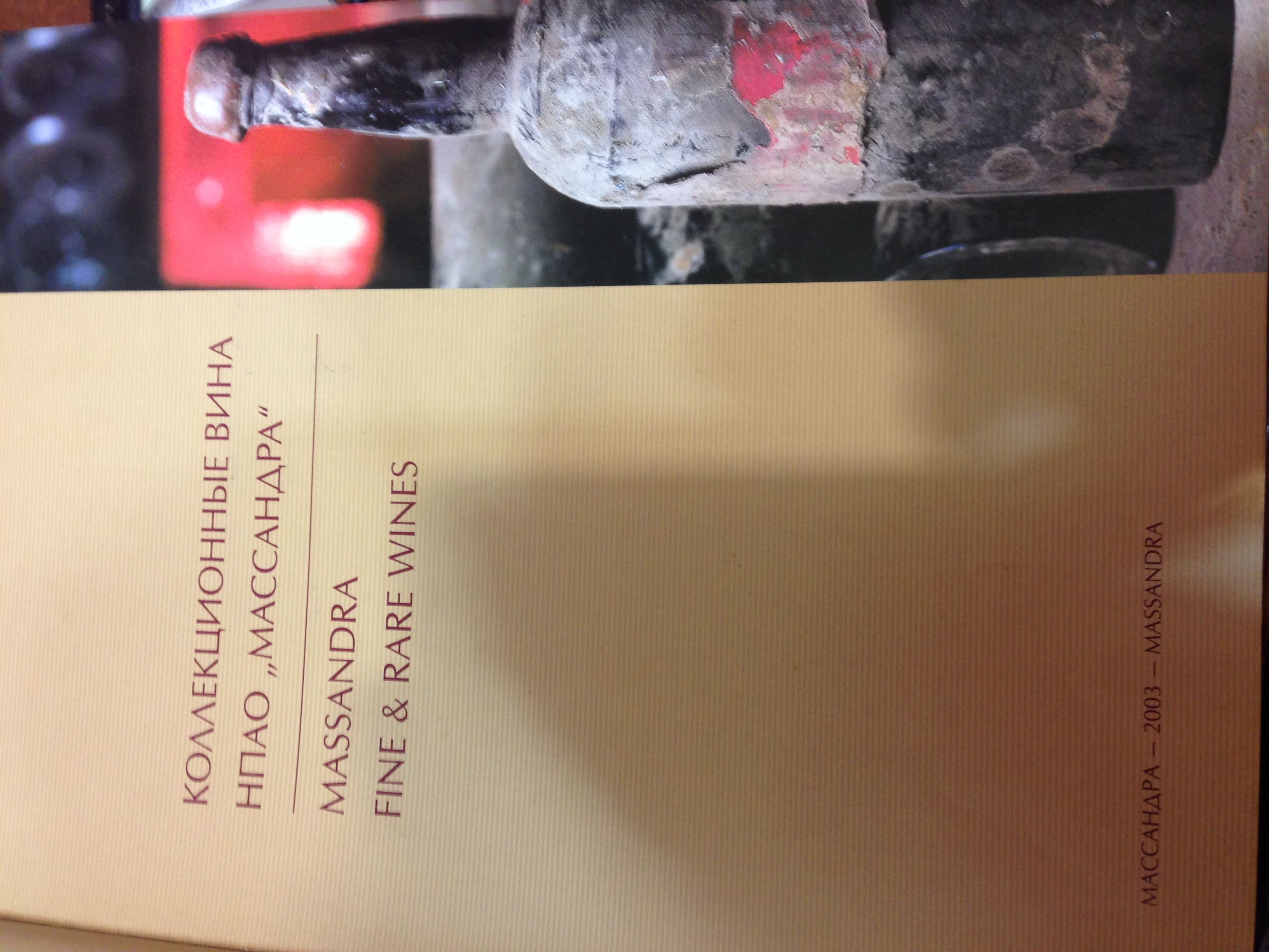 Как -то держал в руках .Это находка для коллекционера Массандры. Книга редкая, продать не захотели ...тогда. Спасибо!2. Николай Бойко. Галина Митяева. Коллекционные вина НПАО «Массандра» 2003 год , на русском и английском языках. 392 с., ил. SBN 966-8485-00-9 (рус.)
