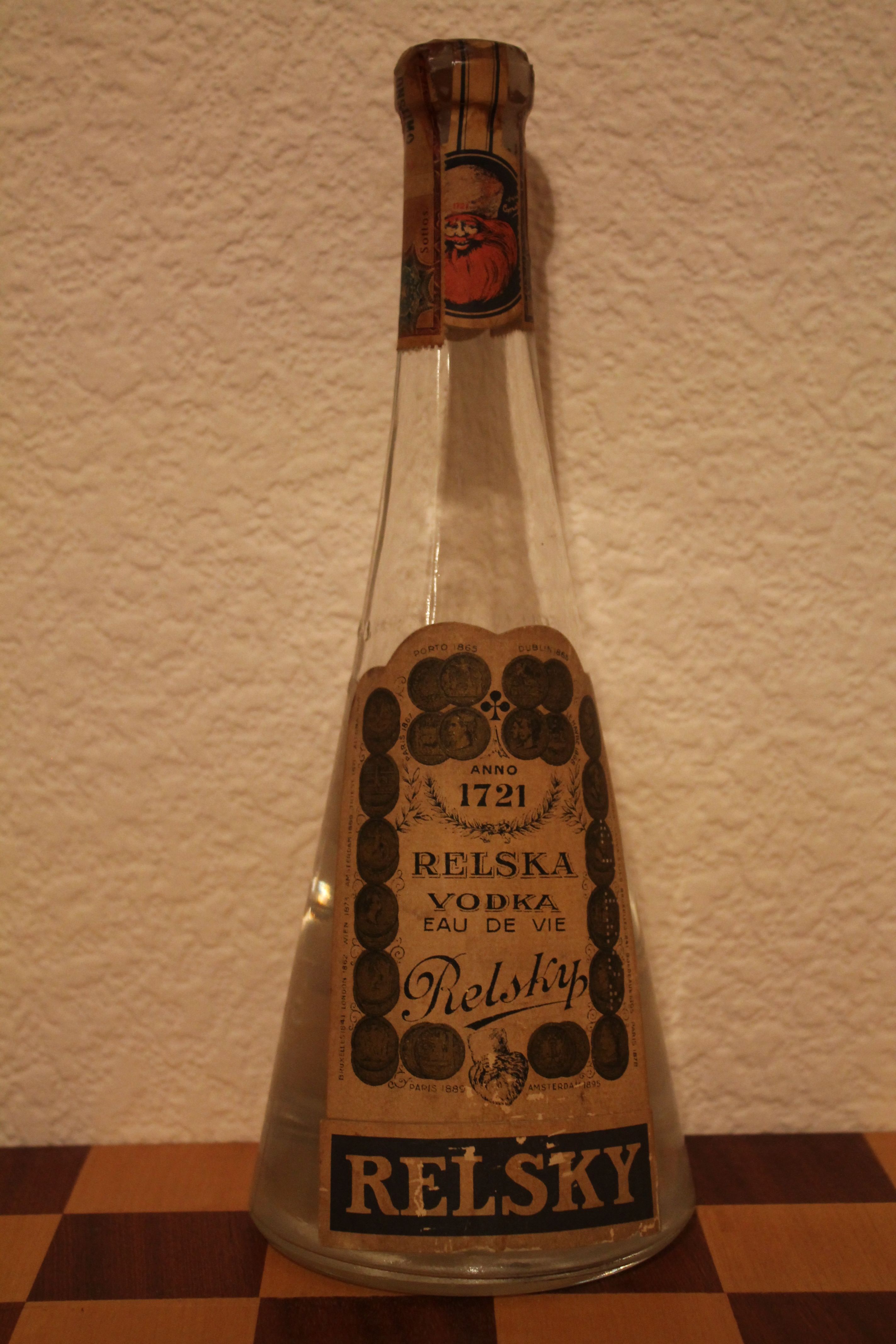 Бутылка имеет на обратной стороне наклейку в честь 200-летия марки. Наклейка сбивает с толку. Полагаю, это все же более поздняя реплика юбилейного выпуска. Марка весьма ценится собирателями.